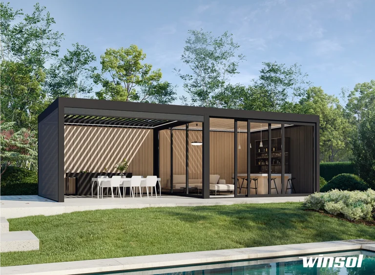 Was, wenn Sie die Vorteile einer Pergola mit denen einer Veranda kombinieren könnten, ohne die Nachteile in Kauf nehmen zu müssen? Lernen Sie der Pergogarten kennen, ein hybrides Outdoor-Konzept ohne Überhitzung an warmen Tagen und mit einer kühlen Brise dank gekippter Lamellen.